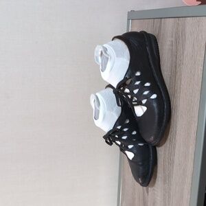 Clif Black Leather Lace Up Flats with Decorative Cutouts EU 36