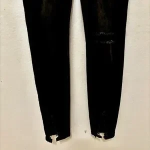 Forever 21 Black Super High Waisted Distressed Deconstructed Skinny Split Hem Denim Jeans