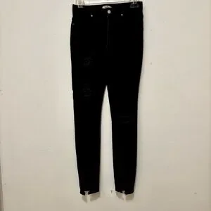 Forever 21 Black Super High Waisted Distressed Skinny Split Hem Denim Jeans