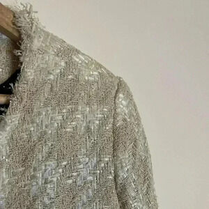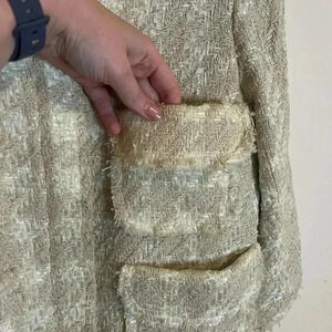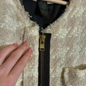 @lindseyhimmel Hello! No stains, holes or rips. No noticeable pulling. The tweed fabric is naturally frayed throughout, as seen if photos. This is by design. Let me know if you have any additional questions. Thanks!