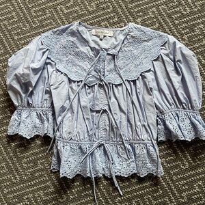 zoco blue puff sleeve tie top🩵