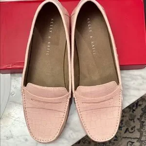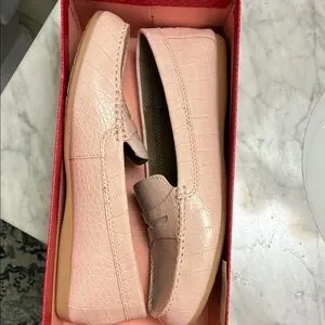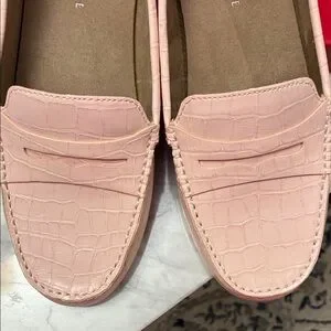 Elegant blush loafers with croc-embossed texture. Stylish and comfortable for any occasion.