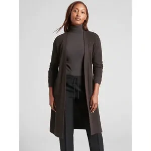 Athleta Scenic Wrap Cardigan Sweater Size XS Walnut Brown Cozy Long Merino Wool