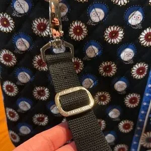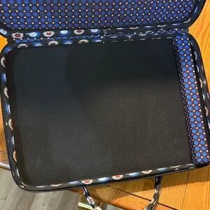 Vera Bradley Pre-owned Hard Shell Laptop Portfolio Bag with a detachable shoulder strap. Features vibrant patterns on a black background.