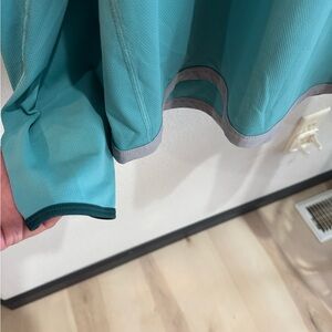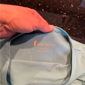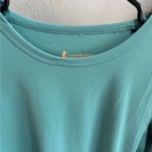 Stylish teal long sleeve tee with grey trim by Cotopaxi. Perfect blend of comfort and fashion. Like new condition. No visible stains or flaws. Measurements in pics.