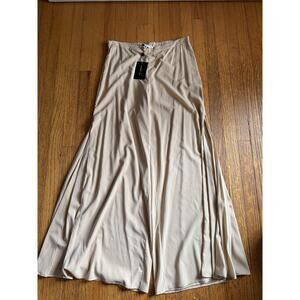 St. John Evening Pants Womens 14 Light Gold Silk Blend Wide Leg Palazzo Side Zip