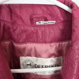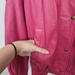 Deerskin Pink Genuine Leather Vintage Snap Closure Cool Retro Bomber Jacket Sz S