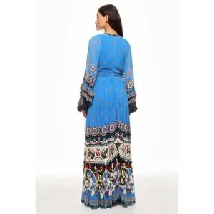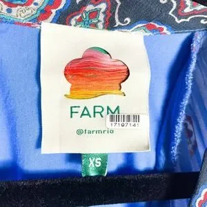 Keywords: FARM Rio dress, blue maxi dress, bohemian dress, print dress, long sleeve dress, ruffle dress, tiered dress, flowy dress, viscose dress, women's dress, casual dress, statement dress, festival dress, summer dress, party dress