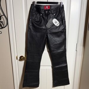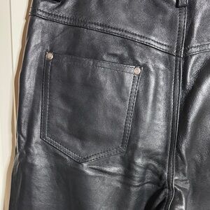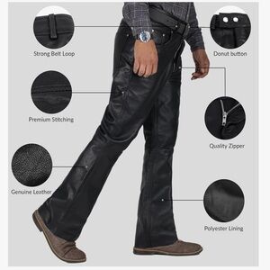 Elevate your style with these sleek black leather jeans pants. Perfect for formal occasions or a night out.