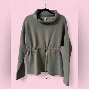 Varley Gray Funnel Neck Drawstring Waist Pullover Sweatshirt Top Size M