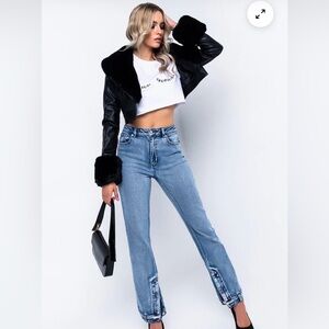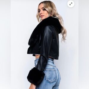 New Azalea Wang Fur Trim Giselle Crop Jacket, Size S