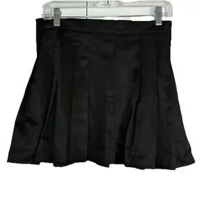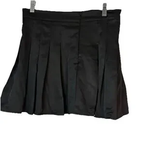ROMWE Women L Solid Pleated Mini Skirt Black Y2K Trendy Preppy Grunge Goth