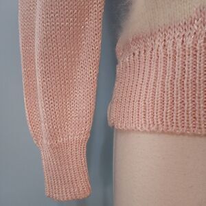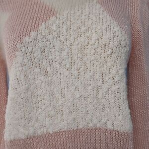 ▪︎ Pullover, Medium weight slinky knit with fuzzy white geometric and popcorn patterns