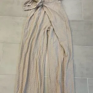 Fit: Relaxed, wide-leg silhouette with adjustable wrap detail
