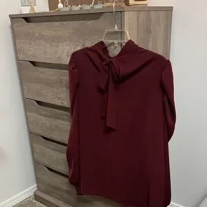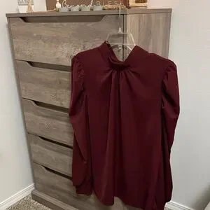 Elevate your wardrobe with this elegant burgundy blouse. Perfect for any occasion.