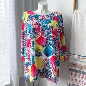 J Jason Wu White Sea Life Seashells Corals Printed Summer Tunic Top Women’s XL