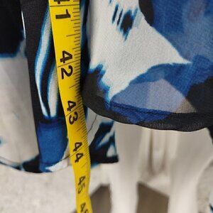 Vera Wang Spaghetti Strapped Emperor Cut Blue Print Elastic Back Dress Size M