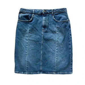 Stylish and versatile denim blue skirt. Perfect for casual outings or a day at the office. Comfortable fit and classic design.