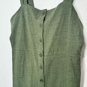 Madewell Texture & Thread Button-Front Tank Dress in Olive Green Size Medium.