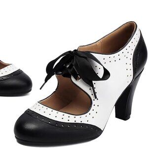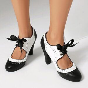 NEW! Women's Mary Jane Vintage Close Round Toe Lace Up Vintage Style 1950's