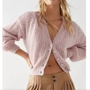 Free People Amelia Alpaca Cardigan Pink Size Medium