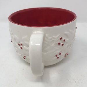 Absolutely gorgeous Starbucks Christmas white and red embossed oversized mug, featuring raised doves, snowflakes and red berries.