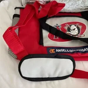 NEW. Red Angels and Ducks Promo cooler. 71/2” high, 5” deep and 13” wide. SGA item at Angel Stadium. Smoke free