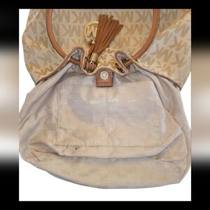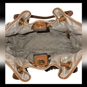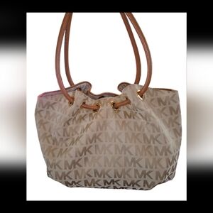 Michael Kors Tan & Brown Logo Canvas Bucket Bag (PreOwned -Sold As Is)