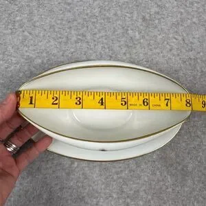 Keywords: Noritake, Wheatcroft, gravy boat, porcelain, fine china, Japan, vintage, original, white, attached underplate, model 5852.