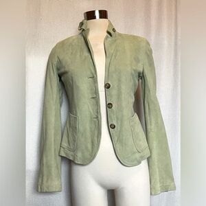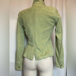 Great button detail at wrists and neck. Great with a tank and jeans or blouse and slacks! Normal wear and tear for suede. There is some polling on lining. Lots of love left to give!