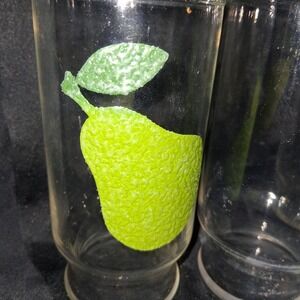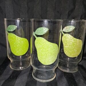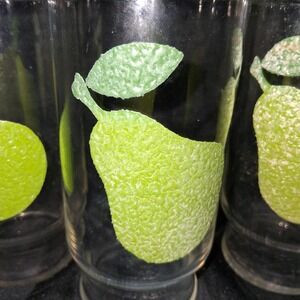 Set Of 3 Vintage Textured Fruit Motif Green Pear 5" Glass Tumblers