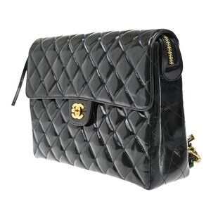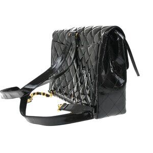 CHANEL CC Matelasse Chain Backpack Bag Patent Leather Black GHW Vintage 898RF602
