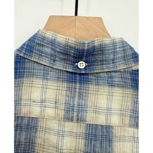 Taylor Stitch Shirt Mens Medium 40 Blue Beige Plaid 100% Linen Button Up