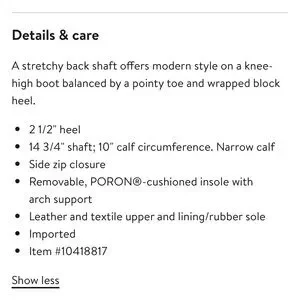 Stunning with skirts and dresses - the most comfortable boot ever IMO! This boot stretches to fit perfectly fit like a glove and has no slip rubber soles on heel and bottom footbed🥰