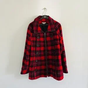 Chris and Jaime Red and Black Woman Checkered Coat Size L