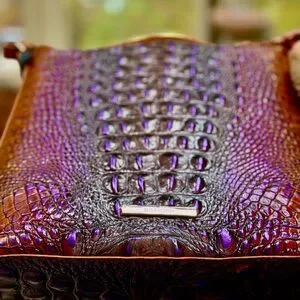 Brahmin Crown Ombré Katie Leather Crossbody with a striking iridescent crocodile pattern in gold, burgundy, purple and gray. Truly one of my favorite colorways! A piece of art! Brand new with tags. Dust bag included.