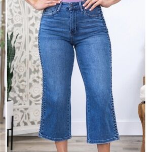 Judy Blue Forgetting You Cropped Blue Jeans with Braided side Detail 16 W
