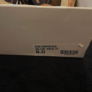 Steve Madden Daybreak blue multi espadrilles strappy high wedges cork, size 8