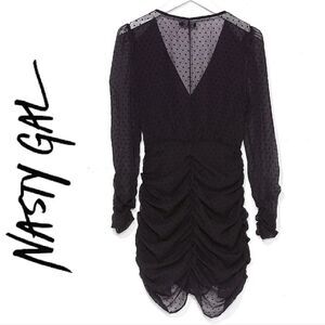 Nasty Gal Black Mesh Quit Ruchin' Spotty Mini Dress Large NWOT