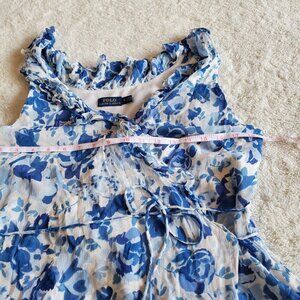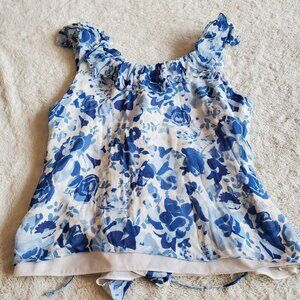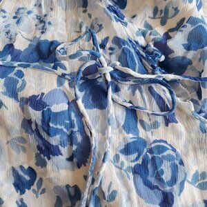 Polo Ralph Lauren Blue White Floral Sleeveless Wrap Blouse 10 Dainty Feminine