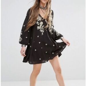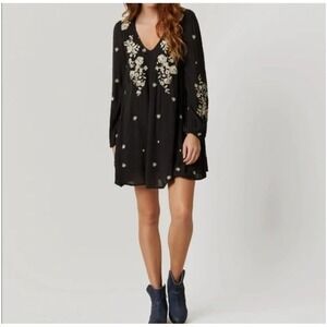 Keywords: boho dress, bohemian dress, embroidered dress, mini dress, long sleeve dress, festival dress, party dress, black dress, floral dress, casual dress, womens dress, boho chic, embroidered mini dress
