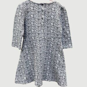Janie and Jack Girl's Lovely Dress, Jacquard Floral Gray/White, LS, Bow, sz 10