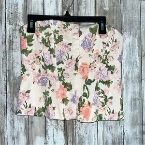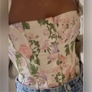 Zara Floral Corset Top XS Cream Pastel Blogger Favorite Bustier Coquette Style