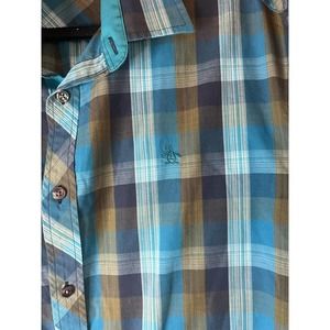 Penguin Mens Plaid Short Sleeve Button Up Casual Shirt