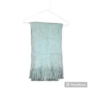 Free People Rectangle Soft Multi Way Blanket Scarf Wrap Fringed Edge Blue