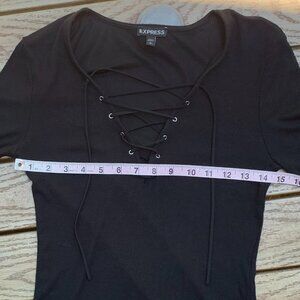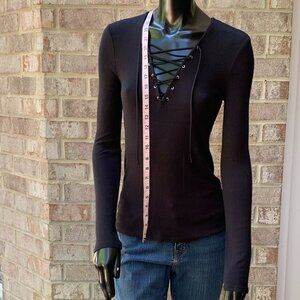 Express Ribbed Lace-Up V-Neck Long Sleeve Top
