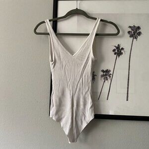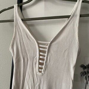 Emma & Sam | EUC Ribbed Ladder Detail Sleeveless Bodysuit in White Size XS