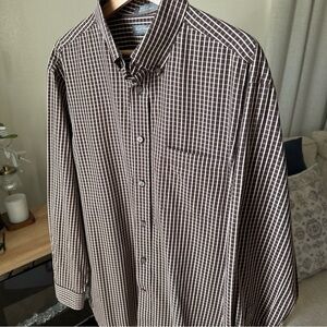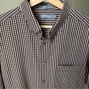Daniel Cremieux Men’s L/S Brown/white Plaid Button Up Size L