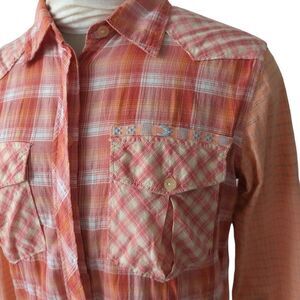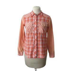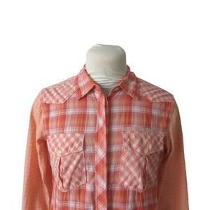 This is an orange plaid western style button down shirt by Maison Scotch.