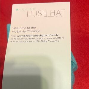 Adorable baby hat with noise-softening feature. Comes in a teal blue. Inside has movable foam to adjust to the location of your babies ears for a perfect fit. Great to help them sleep or to block extra noise while home or out and about!